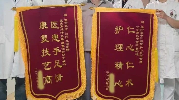 出院之際,患者特意送來兩面錦旗:一面寫給護理團隊,致謝“仁心仁術,護理精心”;一面獻給醫生與治療師,感恩“醫患手足情,康復技藝高” 。這一面面的錦旗,是認可,更是康復醫學科“以患者為中心”的生動寫照。