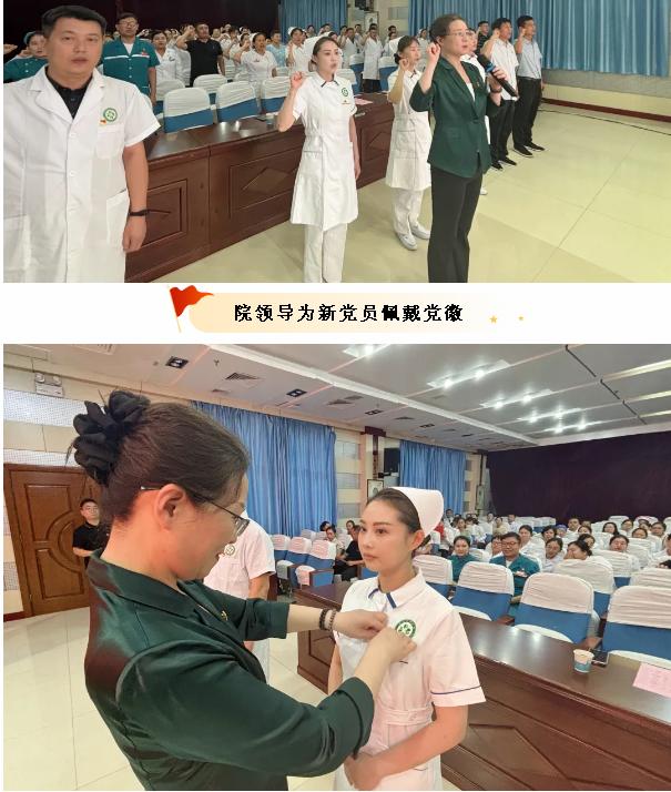 百年篳路藍縷,百年風雨兼程?;顒右潦?,由醫院黨委班子為新黨員佩戴黨徽,以“一枚黨徽”凝聚紅色力量,以“雙重身份”踐行醫者初心;全體黨員在院黨委書記、院長楊軼的領誓下重溫入黨誓詞,鏗鏘誓言重溫入黨初心,醫心向黨堅定奮進信念。