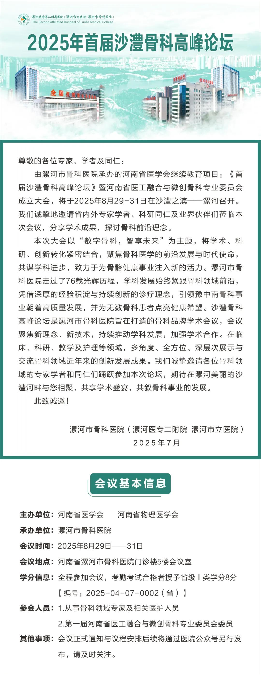 會議預告 | 2025年首屆沙澧骨科高峰論壇召開在即