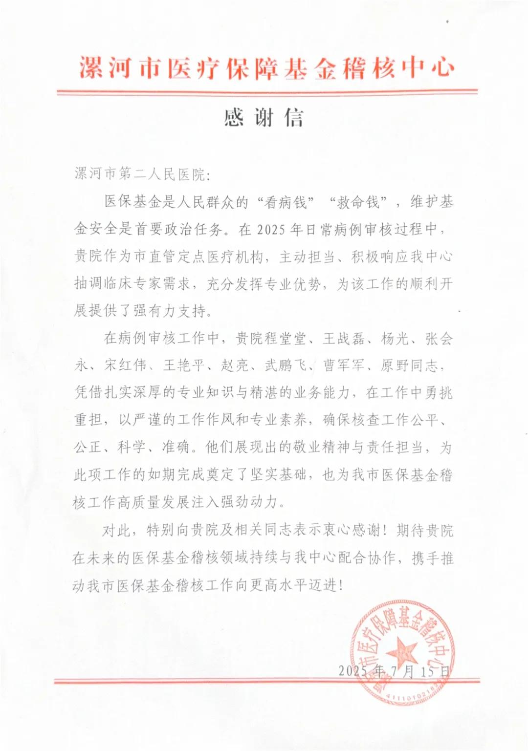 漯河市第二人民醫(yī)院:助力醫(yī)保基金監(jiān)管獲醫(yī)保局贊譽(yù)