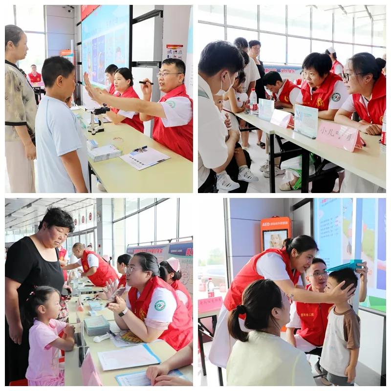 本次活動圍繞“小眼睛、小胖墩、小骨干、小蛀牙、小星星”等“五小”健康主題,來自市二院小兒心血管內科主任時雨、兒童康復科主任孫旭紅、小兒外科主任王松陽、口腔科主任劉學軍、眼科主任李立等在內的40余名專家團隊,圍繞視力保護、口腔健康、合理膳食、骨生長發育以及心理健康等內容,通過健康義診和篩查、權威專家科普講座、應急知識培訓、互動游戲等活動環節,為孩子們的暑假送上了一份特別的健康禮物。活動現場氣氛熱烈而有序,家長們帶著孩子有序排隊篩查。專家們按專科設置服務臺,按專科為兒童提供一站式精準評估與健康指導,現場高效篩查兒童200余人次,有力推動了相關問題的早發現、早診斷。