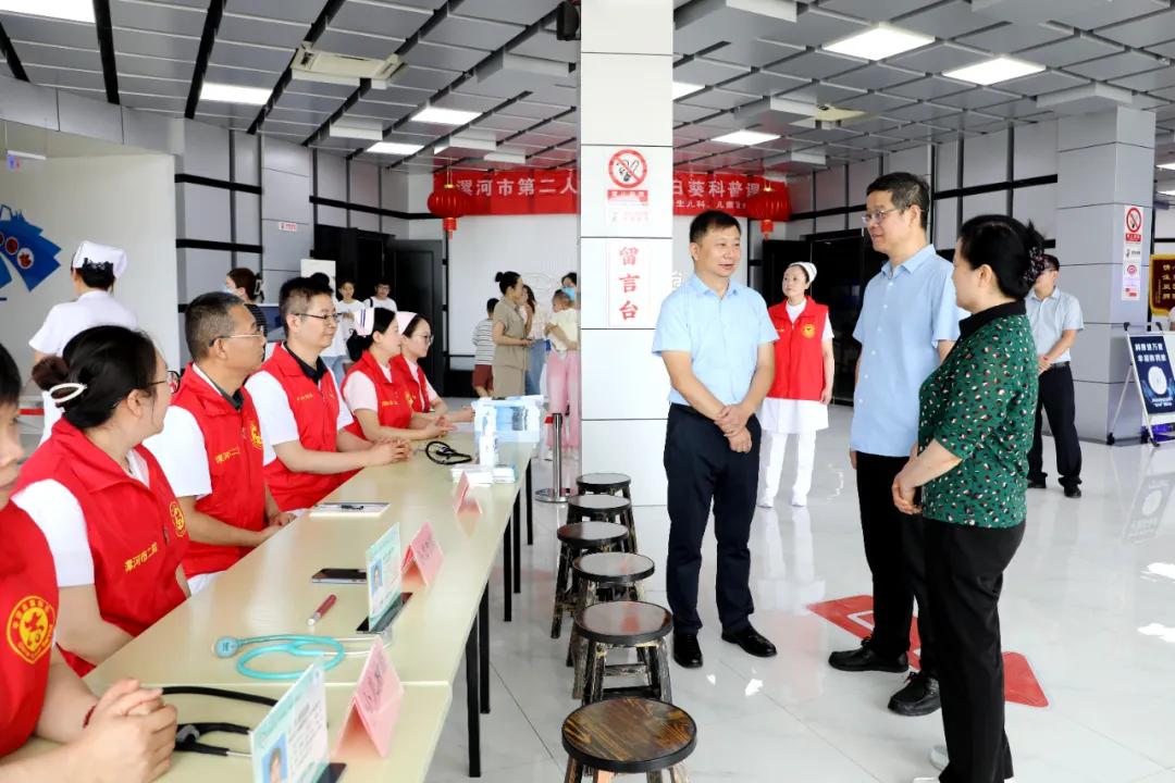 8月14日上午,由市衛健委、市科技館主辦,市二院承辦的“兒童“五小”護健康暑期大型公益篩查活動”在市科技館舉行。市衛健委黨組成員、市愛國衛生促進中心主任于新建,市衛健委二級調研員王新慧、市二院黨委書記魏松參加了本次活動。