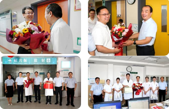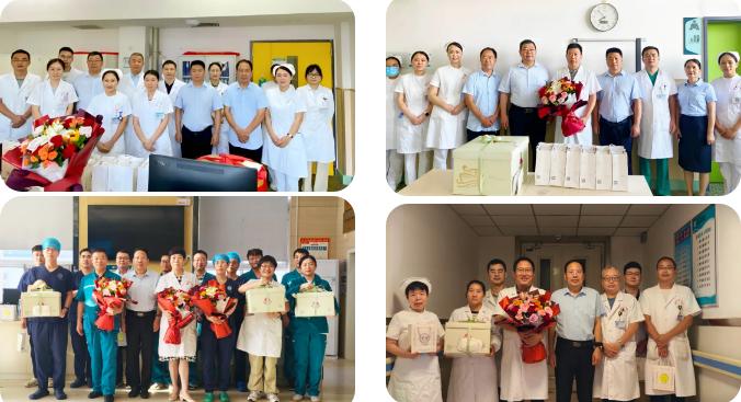 每到一個科室,醫院領導都將精心準備的鮮花、香甜的蛋糕以及貼心的慰問品送到每一位醫師手中。一句句 “辛苦了”“注意休息”,讓醫師們深切感受到醫院的關懷與支持。院領導們高度肯定并贊揚了醫師們在臨床工作中的辛勤付出與無私奉獻。他們強調,醫務工作者是社會中最崇高的職業之一,醫師們憑借自己的專業智慧和汗水,日夜守護著患者的生命健康,是生命戰場上的 “最美逆行者”。