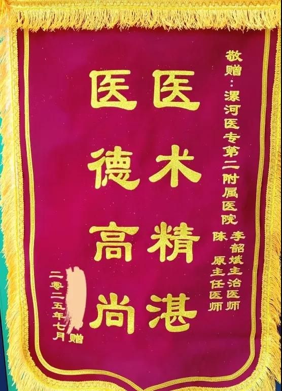 后來患者通過網絡自媒體健康科普視頻,慕名找到漯河醫專二附院普通外科陳原主任咨詢。陳原主任的細致講解得到了患者的認可,住院次日便在超聲引導下完成大隱靜脈射頻消融手術,術后當天下床活動沒有明顯痛感,術后2天就出院回家了。出院半月后專程送來錦旗表示感謝。