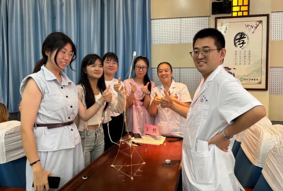 “團結協(xié)作”互動游戲:以14根意大利面、一個棉花糖、一卷膠帶為道具,將道具組合到一起做成一個模型固定到桌子上,哪個團隊的模型最高最結實,哪個團隊獲勝。游戲過程中,大家相互配合、彼此鼓勁,從生疏到默契,從緊張到從容,在歡聲笑語中打破了陌生壁壘。楊軼不時為大家加油,告誡大家不能靠個人的英雄主義和單打獨斗,通力合作才能出結果,團結才能共贏?,F(xiàn)場“醫(yī)院大家庭”的溫馨氛圍愈發(fā)濃厚。直至中午12點多,大家還意猶未盡。