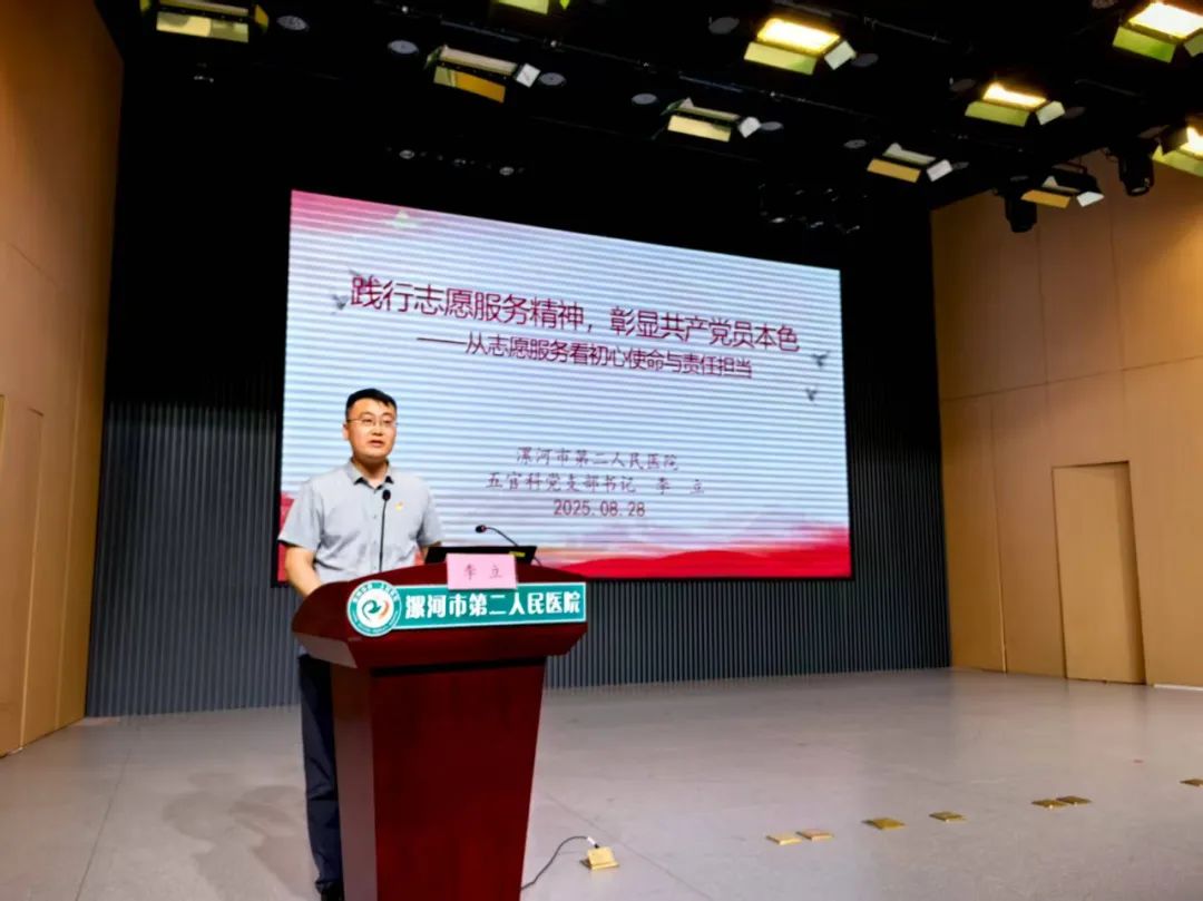 市二院五官科黨支部書記李立以《踐行志愿服務精神,彰顯共產黨員本色——從志愿服務看初心使命與責任擔當》為題,從志愿服務是黨員必修課、志愿服務中的黨性密碼、黨員志愿服務實踐路徑、志愿服務是黨性修養實踐等4個方面,結合醫院大量的志愿服務實例,講述了市二院黨委如何通過“一支部一品牌”活動的開展來發揮黨支部的戰斗堡壘作用和黨員的先鋒模范作用。