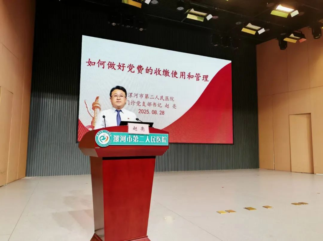 市二院門診黨支部書記趙亮以《如何做好黨費的收繳使用和管理》為題,詳細向大家介紹了黨費的定義、收繳的標準、使用范圍、常見問題等,并結合工作實際列舉了黨費的主要用途和使用規范,使參會人員深刻認識到繳納黨費不僅是黨員應盡的義務,更是對黨崇高信仰和忠誠的符號,進一步認識到黨費收繳、使用和管理工作的重要性和嚴肅性。