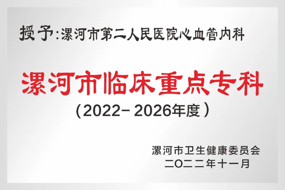 科室是國家級胸痛中心、國家心血管疾病臨床研究中心科研基地、河南省高血壓防治中心成員單位、漯河市臨床重點專科、漯河市心衰聯盟成員單位等專業殊榮,先后榮獲漯河市青年五四獎章集體、市衛健系統先進集體、市衛健系統優秀醫師團隊、市衛健系統優秀護理團隊等榮譽稱號。(伊獻麗)