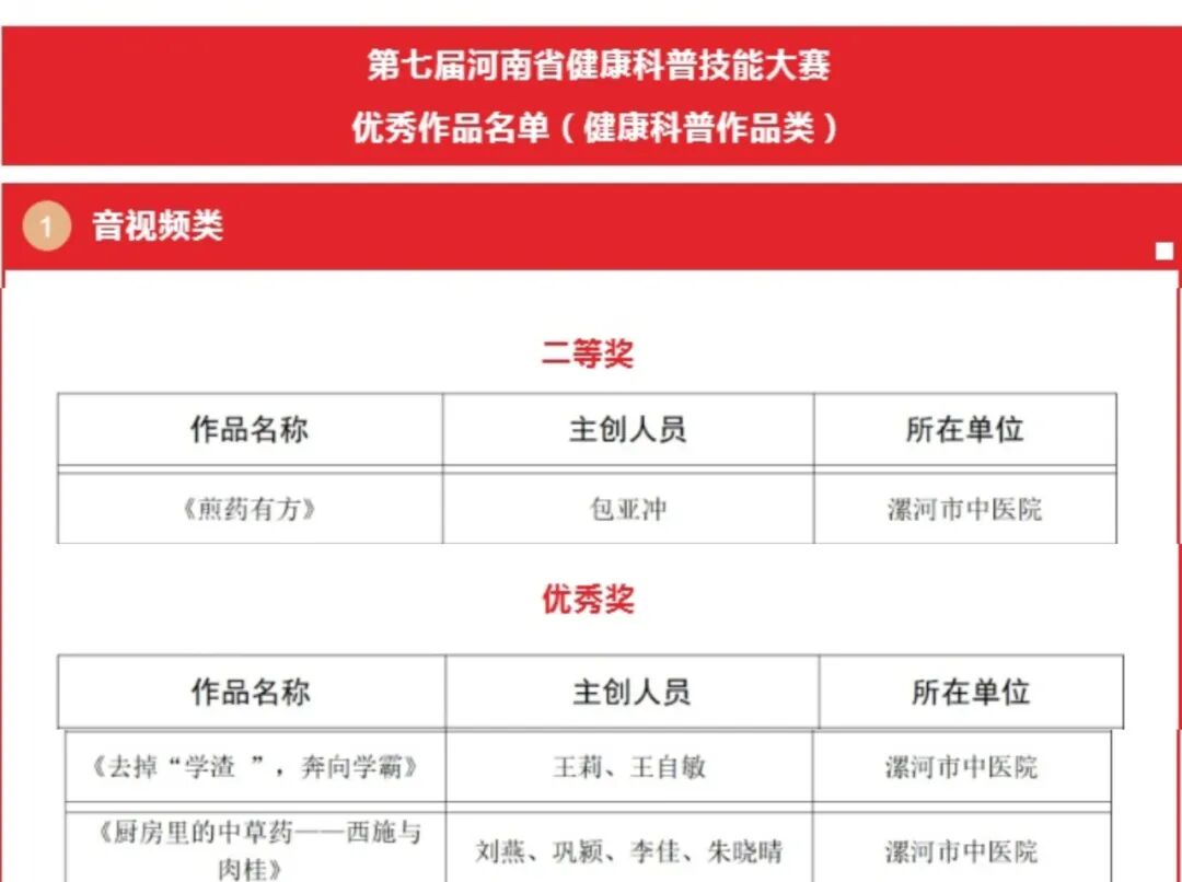 獎獎獎來了——漯河市中醫(yī)院在第七屆河南省健康科普技能大賽中斬獲佳績