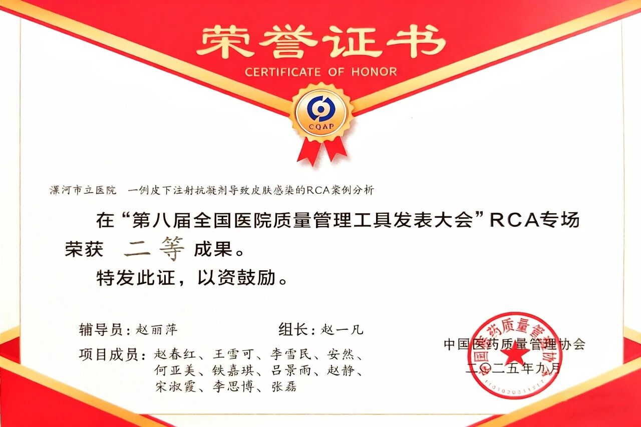 近日,第八屆醫(yī)院質量管理工具應用成果發(fā)表大會在重慶落幕。此次大賽共有來自全國的600多項課題參賽,其中413個項目入圍決賽,競爭激烈。 漯河醫(yī)專二附院(漯河市骨科醫(yī)院、漯河市立醫(yī)院)關節(jié)外科選送的RCA項目與胸外科選送的"非常好圈"品管圈項目,在各自專場中展現了扎實的專業(yè)素養(yǎng),最終在眾多優(yōu)秀團隊中勝出,分別斬獲二等獎和三等獎。