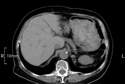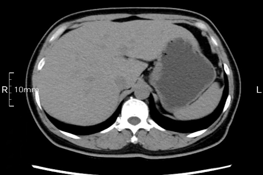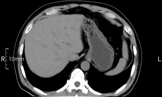 沒禁食,胃內全是食物,導致胃壁顯示不清。