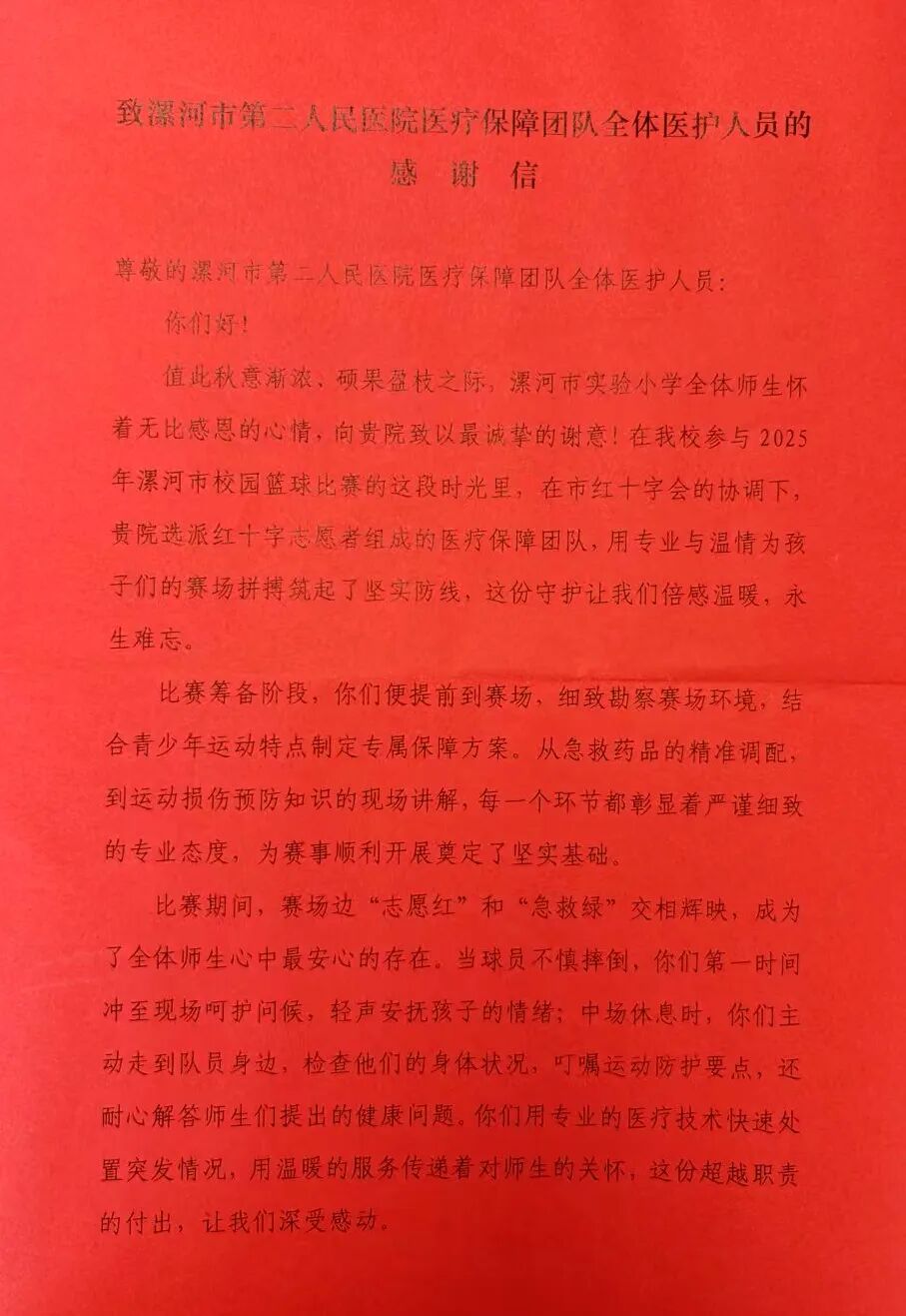 市紅十字會、市實驗小學贈送錦旗感謝信致謝漯河市二院