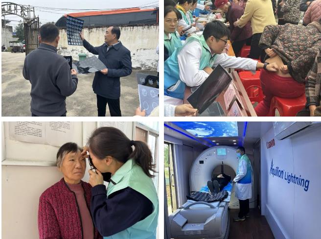 活動現場,專家志愿者各司其職,有序地為當地居民進行血壓、手指血糖的免費測量,進行心電圖檢查、甲狀腺彩超檢查、骨密度檢測、眼底篩查、CT檢查、體格檢查,提供用藥指導、健康咨詢、疾病診斷等服務。針對高血壓、糖尿病、關節炎等常見慢性病,提供個性化的用藥指導和飲食建議。