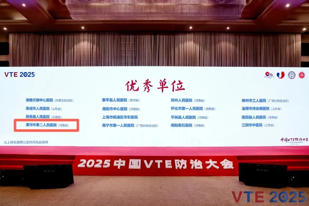 2025年10月31日,由全國肺栓塞和深靜脈血栓形成防治能力建設項目辦公室、協同醫療健康基金會聯合主辦的“2025年中國VTE防治大會”在北京成功舉行。會上,漯河市第二人民醫院憑借扎實的防治成效與規范的管理體系,被授予“全國肺栓塞和深靜脈血栓形成防治能力建設項目優秀單位”稱號。副院長張曉東代表醫院參會并接受授牌,這也是當前漯河市域內唯一通過此項國家評審的醫療機構。