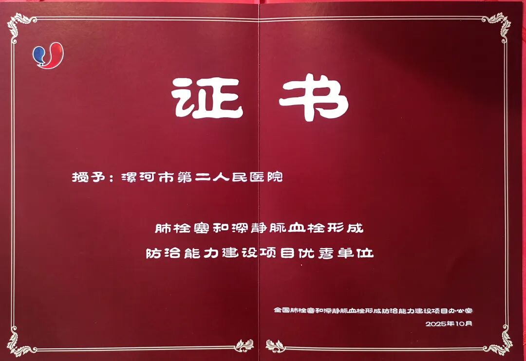 漯河市二院獲評“全國肺栓塞和深靜脈血栓形成防治能力建設項目優秀單位”