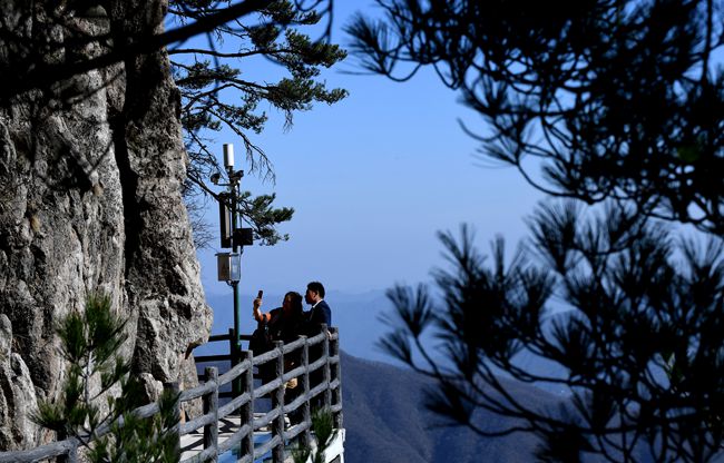 4月17日,游客在河南省欒川縣老君山景區(qū)游玩。近年來(lái),當(dāng)?shù)卮罅Πl(fā)展旅游扶貧工作,美了鄉(xiāng)村,富了農(nóng)民。