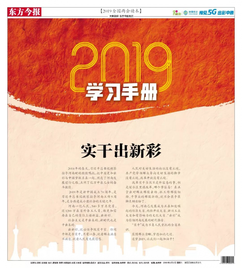 這是繼《2015學習手冊》、《2016學習手冊》、《2017學習手冊》、《2018學習手冊》后,河南東方今報•猛犸新聞第五年精心編輯出版的全國兩會特刊。