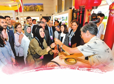 6月27日,在“中國共產黨的故事”專題宣介會主題展上,麥秸稈作畫吸引了外國嘉賓的眼球。鄧放 王錚攝