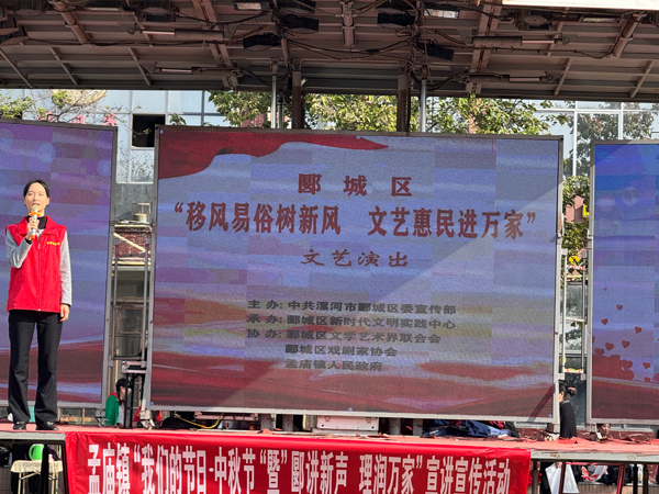 為推動(dòng)黨的創(chuàng)新理論深入基層、移風(fēng)易俗深入人心,在國慶、中秋雙節(jié)即將到來之際,孟廟鎮(zhèn)于9月30日在時(shí)代廣場(chǎng)開展“移風(fēng)易俗樹新風(fēng),文藝惠民進(jìn)萬家”文藝演出暨黨的創(chuàng)新理論宣講活動(dòng)。