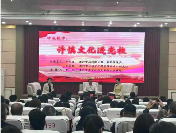 為深入學習習近平文化思想,貫徹落實中央和省委、市委關于文化建設的工作部署,推動我市“四大本土文化”創造性轉化、創新性發展,11月6日上午,市社科聯主席、社科院院長李華強,市許慎文化研究保護中心副主任朱菲輝受邀走進黨校秋季學期第二期主體班課堂,開展了“許慎文化進黨校”專題訪談教學,市委黨校科技文化教研室副主任、副教授華冰主持。