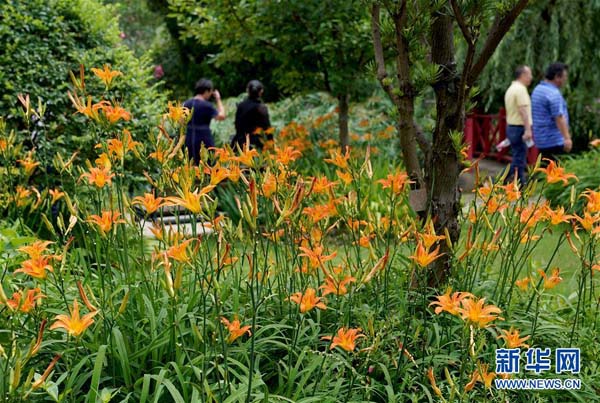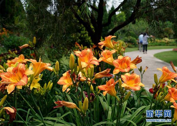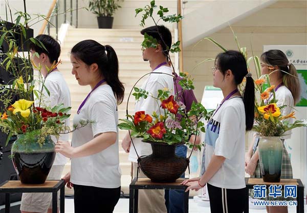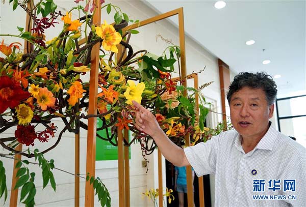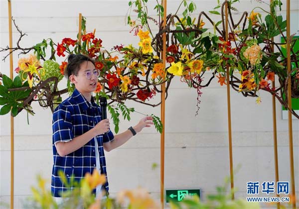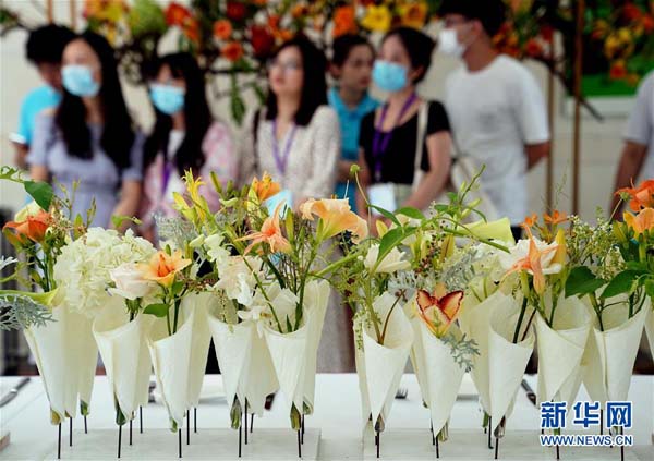6月13日,上海應用技術大學的學生們設計創作的萱草花藝作品即將在開幕式現場亮相。 當日,“2020中國(上海)萱草文化節”在上海應用技術大學開幕,校園里數百個品種的萱草花競相綻放,萱草科研推廣、萱草文化交流等多項活動同時舉行。 新華社記者劉穎攝