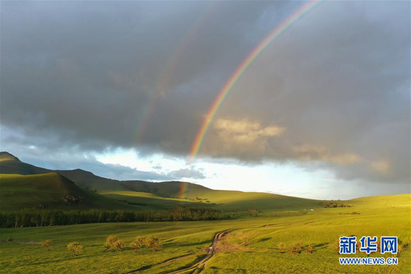 阿魯科爾沁草原上的彩虹(無人機照片)。