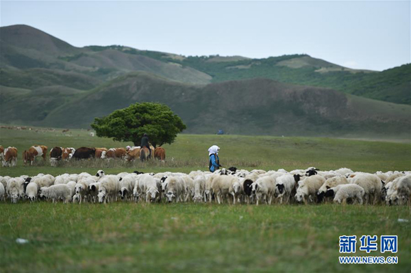 牧群在阿魯科爾沁草原上覓食(6月3日攝)。