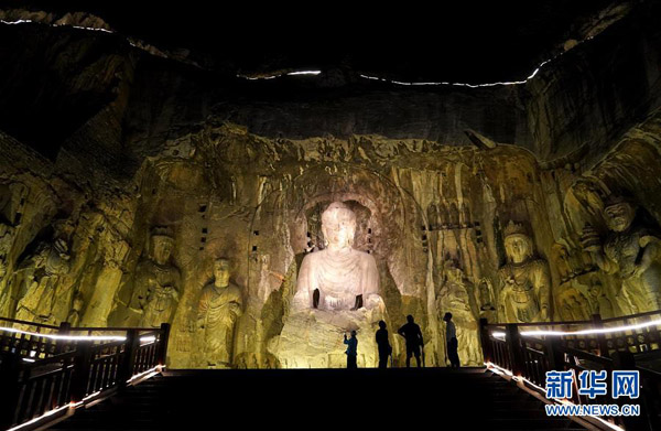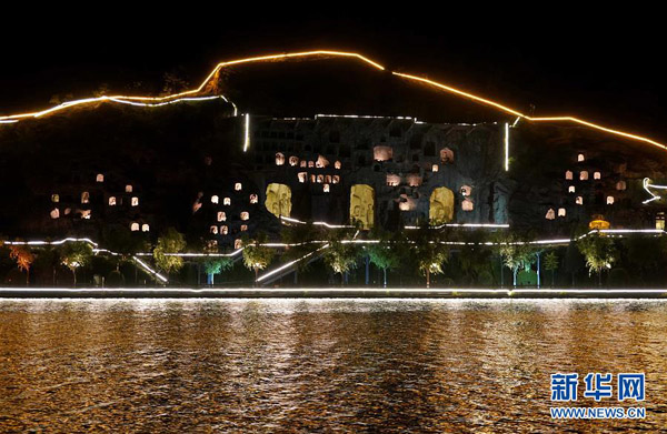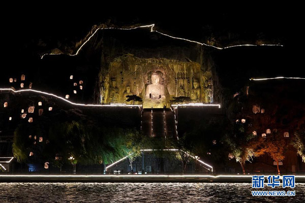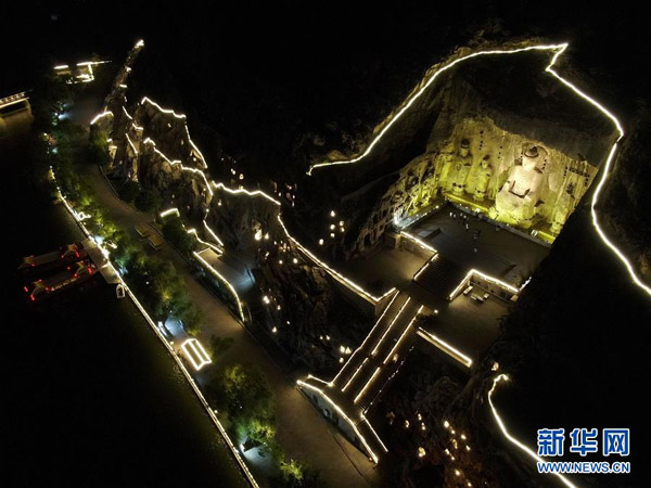 2020年4月起,河南省洛陽市龍門石窟景區推出“夜游龍門”活動,讓游客在晚間領略石窟造像的別樣風采。 新華社記者 李安 攝