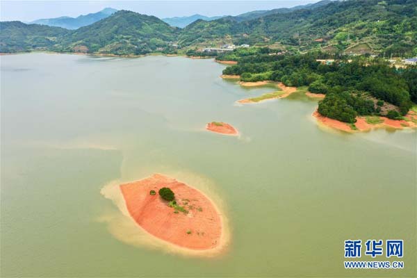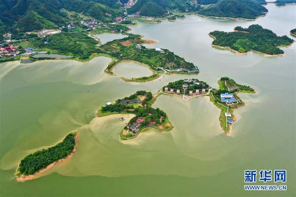 這是7月2日拍攝的福建省古田縣翠屏湖(無人機照片)。 位于福建省古田縣境內的翠屏湖是福建省最大的人工湖,水域面積達37.1平方公里,湖中分布著眾多島嶼,素有“福建千島湖”之美譽。陣雨過后,翠屏湖煙波浩渺,美不勝收。 新華社記者 姜克紅 攝