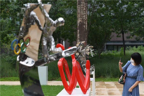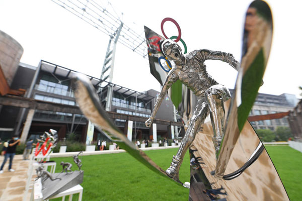 7月13日,冬奧藝術系列展首展《飛翔的夢·情系冬奧》在北京冬奧組委辦公區開幕,此次展覽共展出40件以謳歌奧運精神、展現冰雪運動為主題的雕塑作品。據介紹,北京冬奧組委將結合北京冬奧會籌辦工作的重要時間節點,邀請藝術家、文化機構等在北京冬奧組委辦公區,舉辦八場系列展覽和主題藝術活動。新華社記者 鞠煥宗 攝