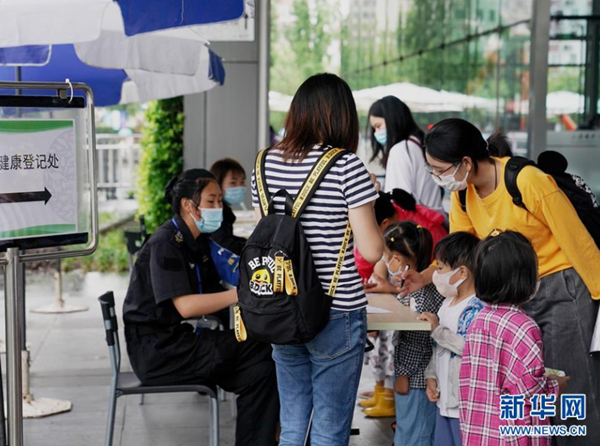 7月15日,在上海自然博物館入口,工作人員對入館觀眾進行健康登記。 進入暑假,不少家長帶著孩子到上海自然博物館參觀。該展館采取實名制分時段購票參觀、參觀人數分時限流、發布次日參觀人數預測等舉措,加強防疫常態化管理。 新華社記者 劉穎 攝
