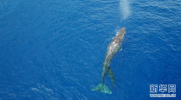 這是7月24日在南海某海域拍攝的抹香鯨(無人機照片)。 新華社記者 張麗蕓 攝