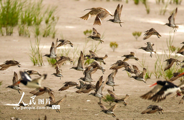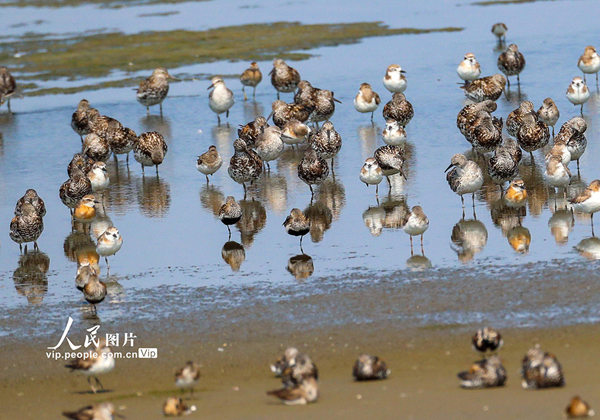 近年來,世界自然遺產(chǎn)地江蘇省鹽城市東臺條子泥濕地,不斷加大濕地修復(fù)、退漁還濕力度,為遷徙的水鳥提供更多的棲息覓食場所。近日,大批白腰杓鷸、大濱鷸、斑尾塍鷸、黑尾塍鷸、半蹼鷸、黑腹濱鷸、紅頸濱鷸、環(huán)頸鴴、蒙古沙鴴等鴴鷸類南遷候鳥在修復(fù)的高潮位棲息地停歇,取得了良好的生態(tài)效益。孫家錄/人民圖片