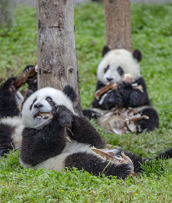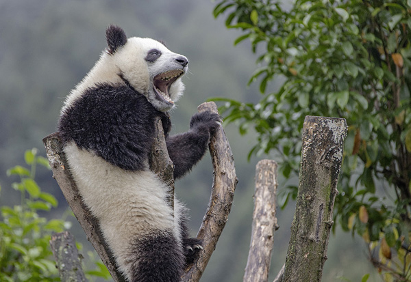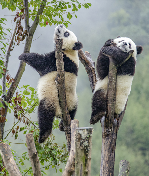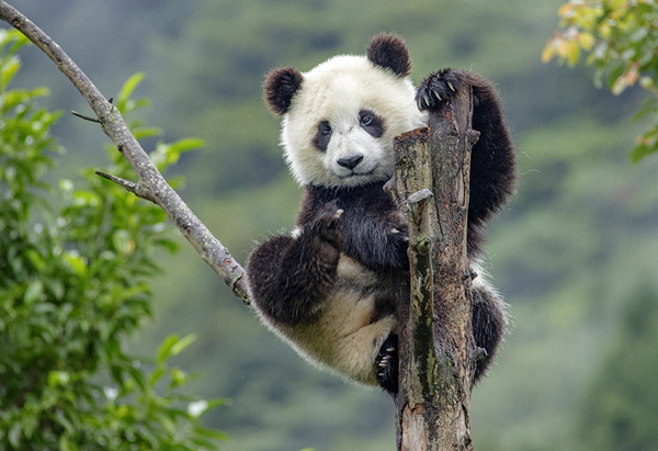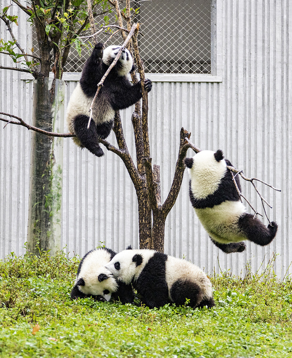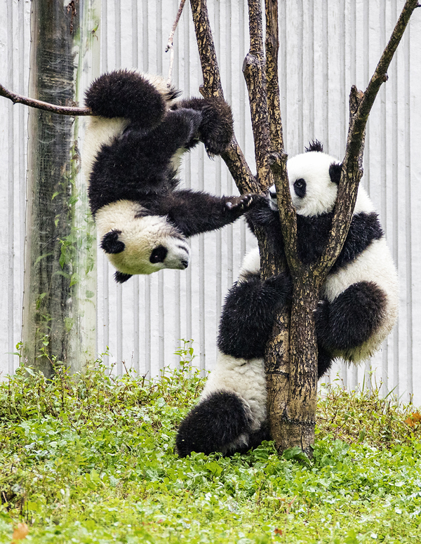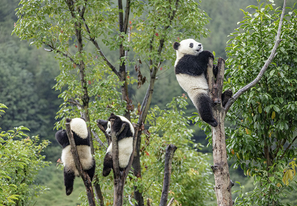 2020年9月12日,四川省阿壩藏族羌族自治州汶川縣耿達鎮,中國保護大熊貓研究中心耿達神樹坪基地內的大熊貓在玩耍,萌態十足惹人愛。 劉國興/攝