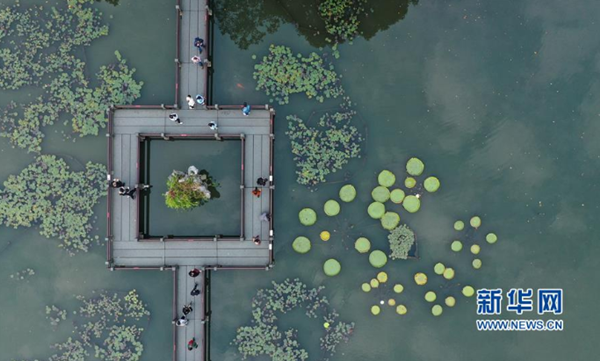 10月22日,游人在西湖小瀛洲島游玩(無人機(jī)照片)。 近日,隨著氣溫降低,杭州西湖初露秋色,顯出迷人風(fēng)韻。 新華社記者 翁忻旸 攝