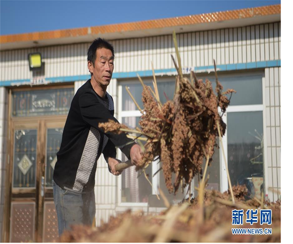 內蒙古自治區奈曼旗青龍山鎮互利村脫貧戶王洪巖在干農活(11月4日攝)。 新華社記者 李志鵬 攝