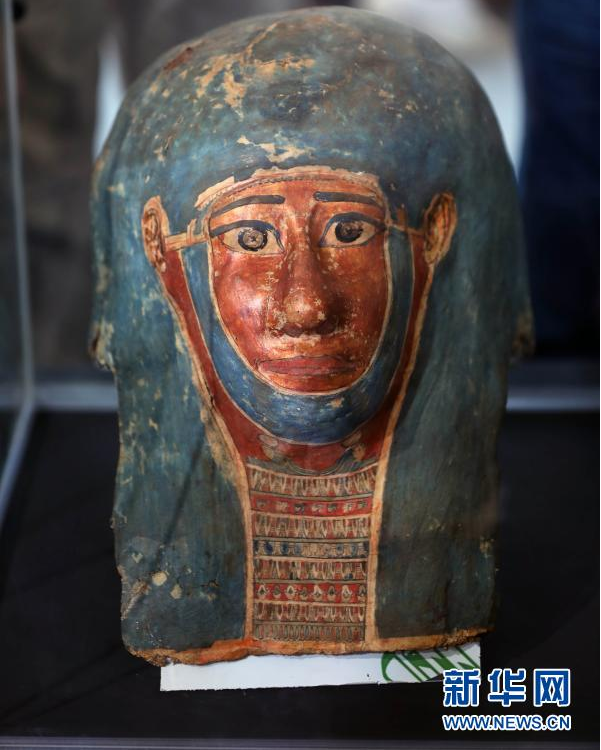 這是11月14日在埃及吉薩的彩繪木棺發現現場拍攝的文物。埃及旅游和文物部長哈立德·阿納尼14日宣布,在吉薩省塞加拉地區出土100具距今約2500年的彩繪木棺,這是埃及本年度最大的考古發現。新華社發(艾哈邁德·戈馬攝)