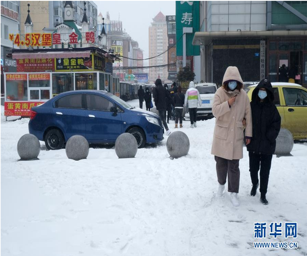 11月19日,行人走在黑龍江省牡丹江市街頭。