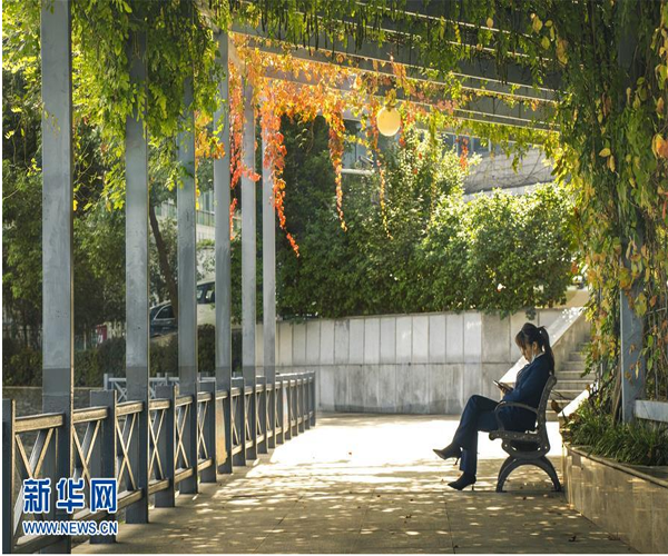 10月27日,市民在武漢市新華路與建設大道相交處的“口袋公園”內歇息。新華社記者 熊琦 攝