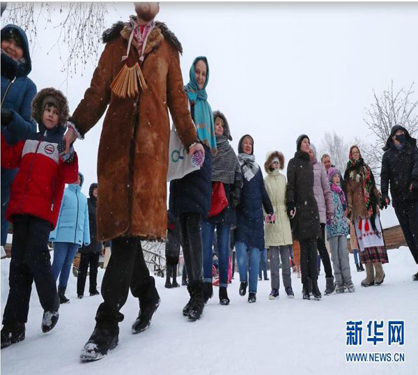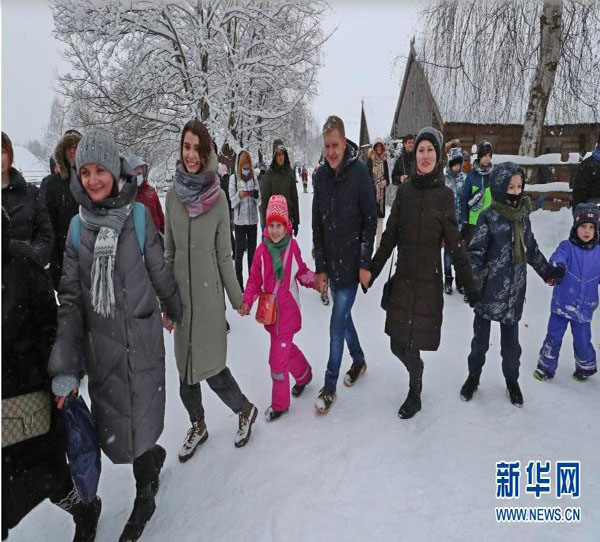 1月9日,人們在白俄羅斯首都明斯克郊區的一處建筑博物館參加游園活動。新華社發(任科夫 攝)