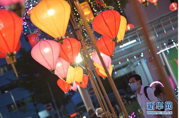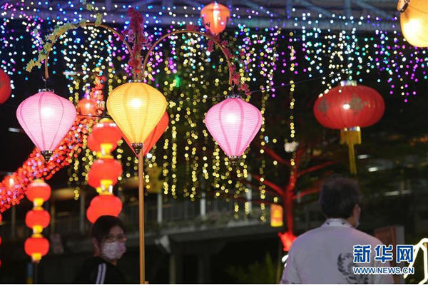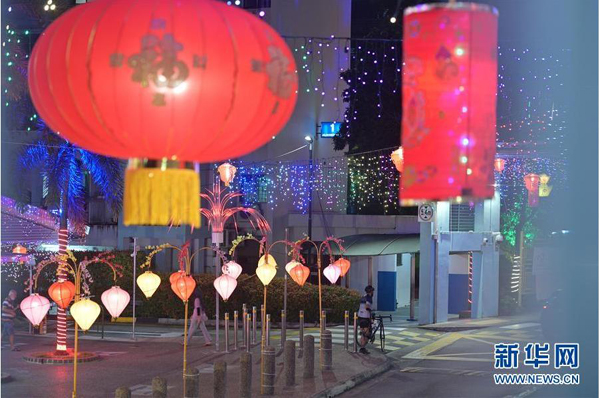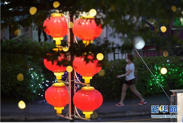 1月18日,慶祝農歷新年的燈飾在新加坡紅山組屋區亮起。 新華社發 (鄧智煒 攝)