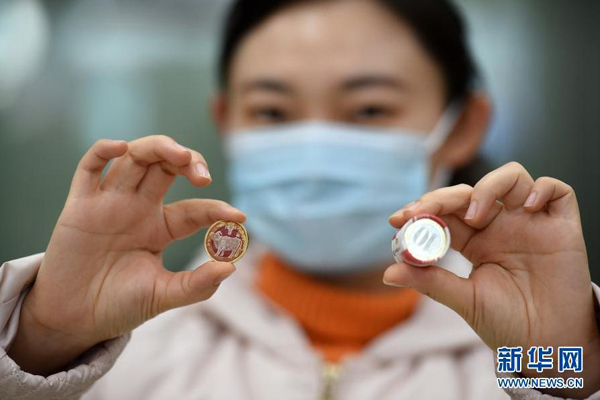 1月29日在江蘇淮安拍攝的紀念幣。當日,中國人民銀行發行的2021年賀歲普通紀念幣開始兌換。