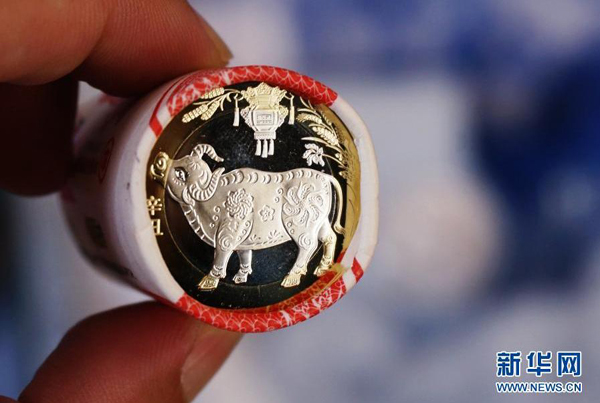 賀歲普通紀念幣開始兌換 紀念幣背面主景圖案為一頭“抬頭牛”,面額10元,預約兌換數量約1.4億枚。