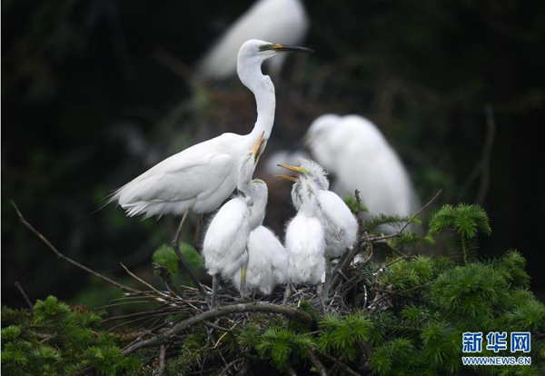 在南昌市新建區象山森林公園內,白鷺和雛鳥們在一起(5月18日攝)。