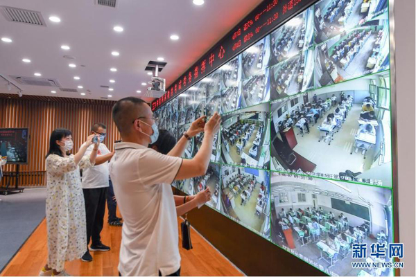 當日,2021年高考拉開帷幕。位于吉林省教育考試院的吉林省國家教育考試考務指揮中心向考生家長代表和新聞媒體開放,接受社會監(jiān)督。這里的監(jiān)控系統(tǒng),可以查看全省150個考點3795個考場的考生答題情況。