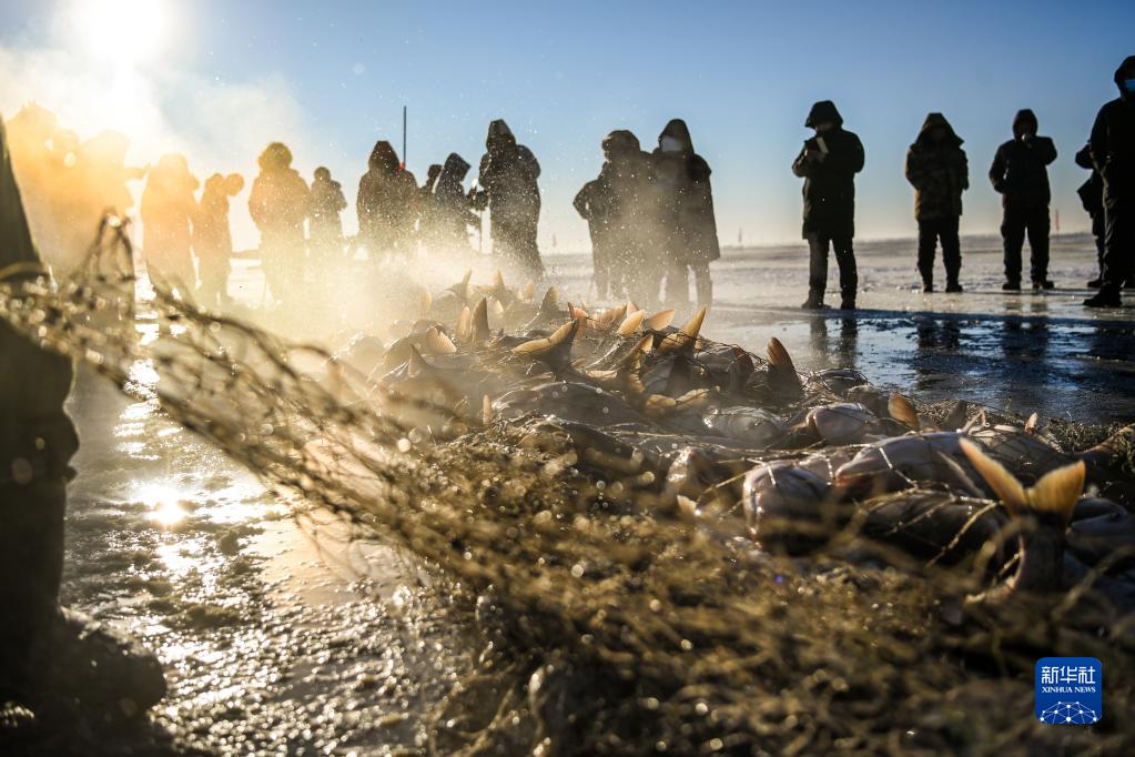 12月26日,游客在查干湖冰面上近距離觀看冬捕盛況。
