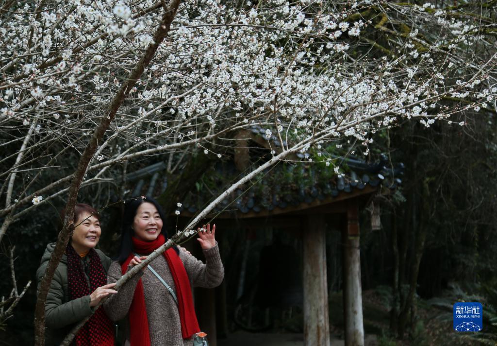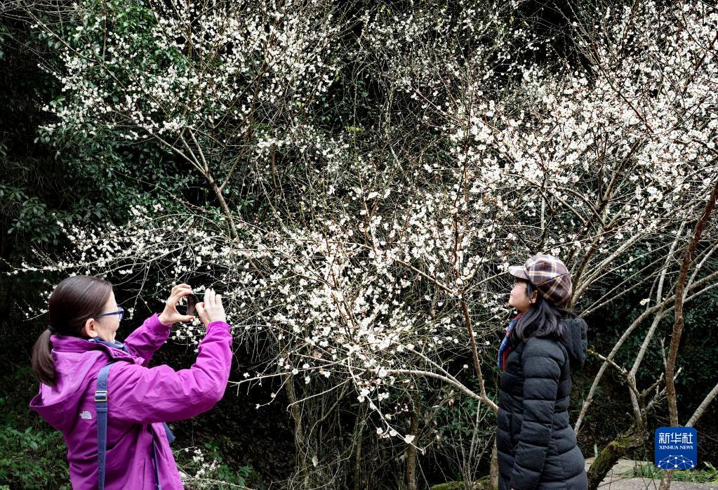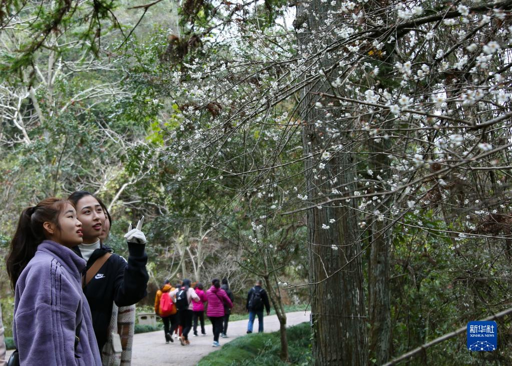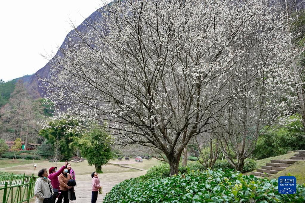 冬日時節,福建武夷山國家公園內的梅花相繼綻放,吸引眾多游人前來觀賞。
