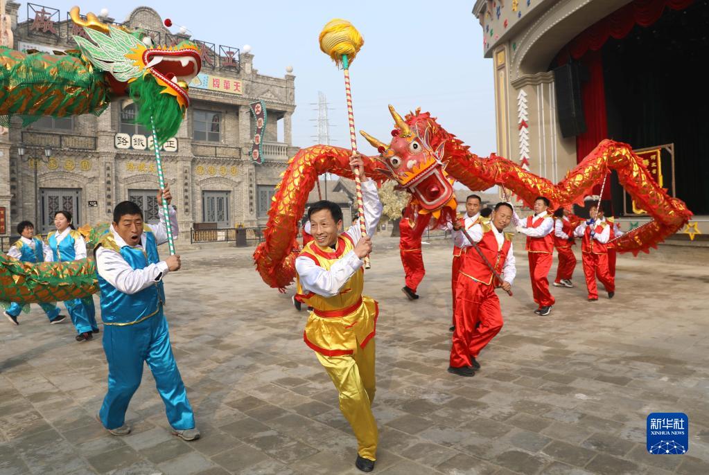 1月25日,在河北省石家莊市鹿泉區龍泉古鎮,民俗藝人在進行舞龍表演。
