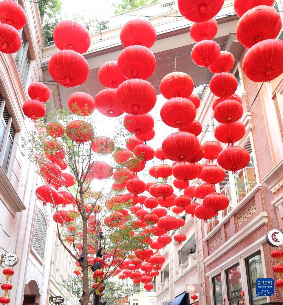 當(dāng)日是元宵節(jié),香港街頭的節(jié)慶裝飾烘托出節(jié)日氛圍。