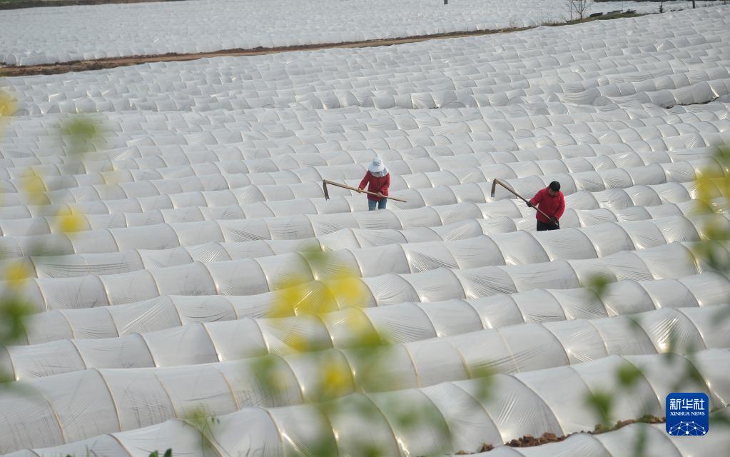 2月24日,在廣西南寧市興寧區(qū)五塘鎮(zhèn)西龍村蔬菜種植基地,農(nóng)民在平整土地。